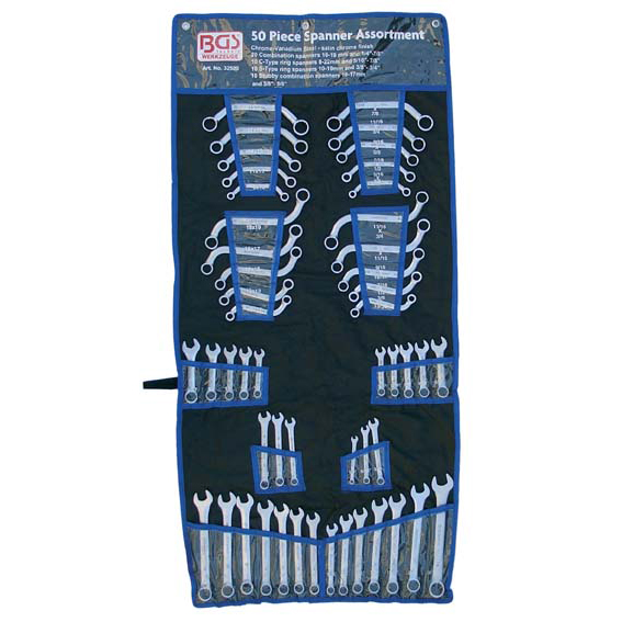 BGS 32500 sleutel set 50-delig, S-vormige sleutels, u-vormige sleutels, extra korte sleutels, normale sleutels, super handig in de werkplaats. Geleverd in etui die ook opgehangen kan worden.