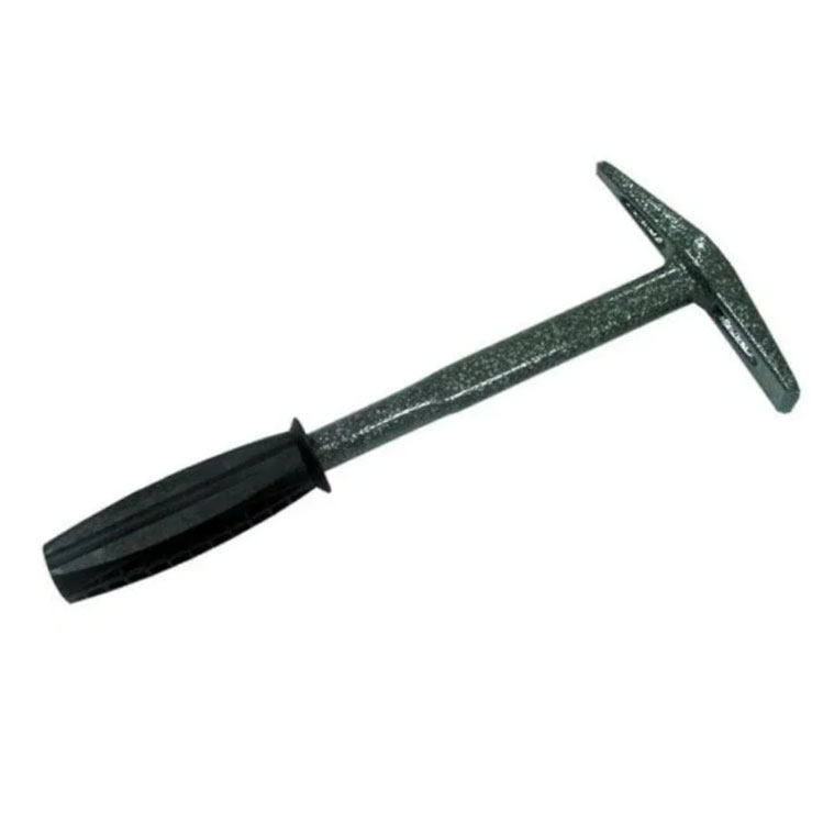Bikhamer van 300 gram met stalen steel. Een zijde is voorzien van een punt, de andere zijde van een bredere platte kant.
