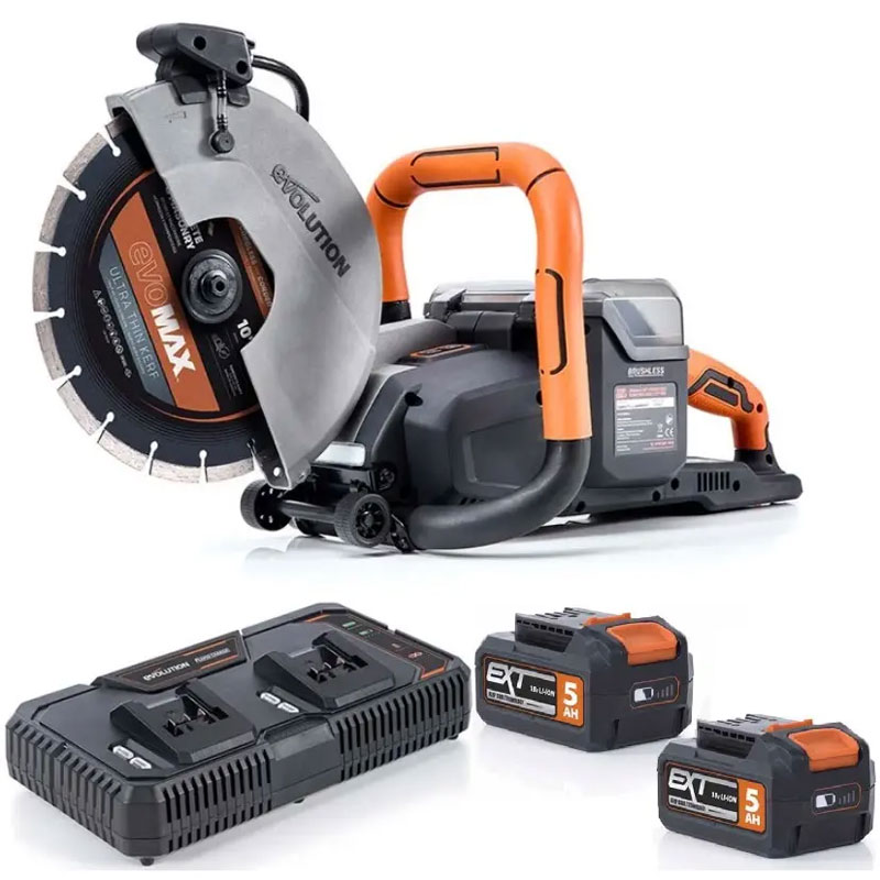 Evolution R260DCT-Li steen doorslijpmachine 260mm met stof onderdrukking – wateraansluiting – 2x 5AH accu’s | R260DCT-Li