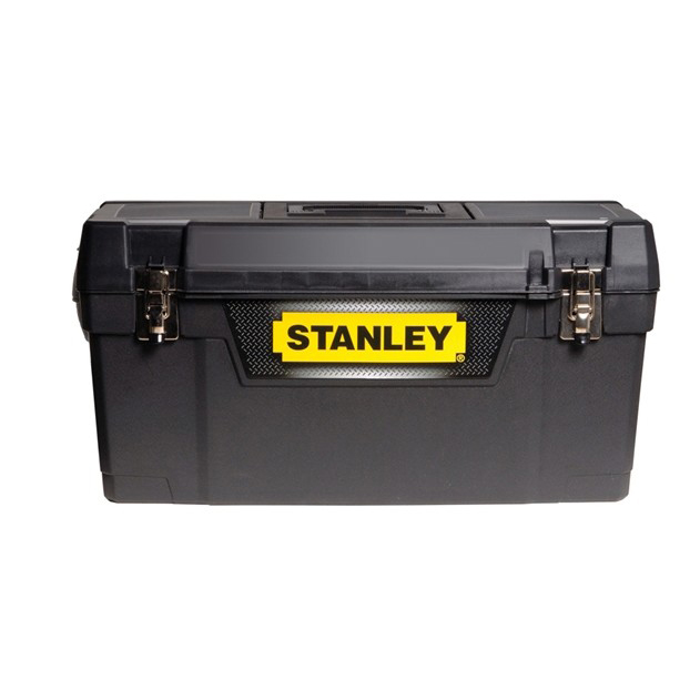 Gereedschapskoffer stanley basushka 51cm met een aparte laadbak die er desgewenst uit gehaald kan worden. In het deksel naast het handvat zitten weerskanten twee kleine opbergvakken.