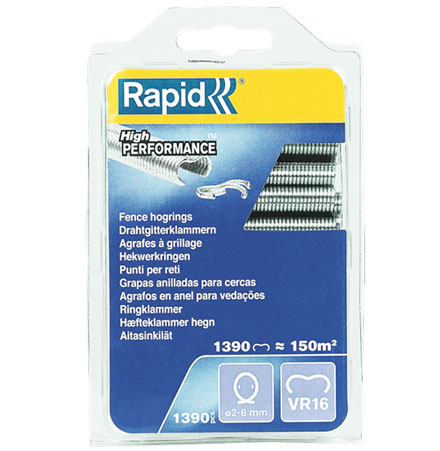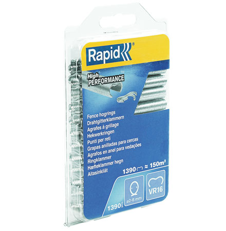 Hekwerk hogringen gegalvaniseerd Rapid VR16 3190 stuks. Geschikt voor een diameter van 2-8 mm en ideaal voor het vastzetten van kooien, hekwerk of het beschermen en vastzetten van jonge planten.