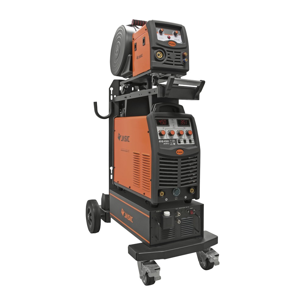 Jasic MIG 450 lasapparaat voor de professionele lasser. Inschakelduur van 100% op 400A. Compleet met trolley, waterkoeler, 5 meter tussenpakket en watergekoelde migtoorts.