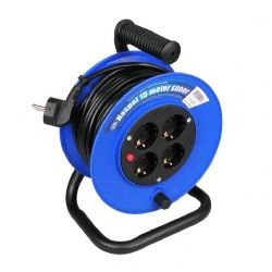 Kabelhaspel 15 meter 3x1mm² met 4 randaarde stekkers en thermische beveiliging.