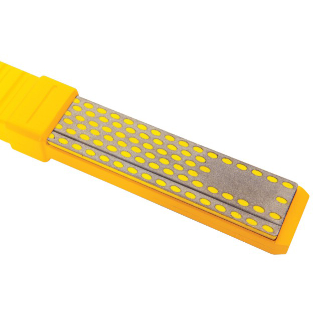 Slijpsteen Stanley diamant met een grove korrel aan één zijde en fijne korrel aan de andere. De slijpsteen kan opgeborgen worden in de handgreep om te beschermen tegen vocht, vuil en schokken.