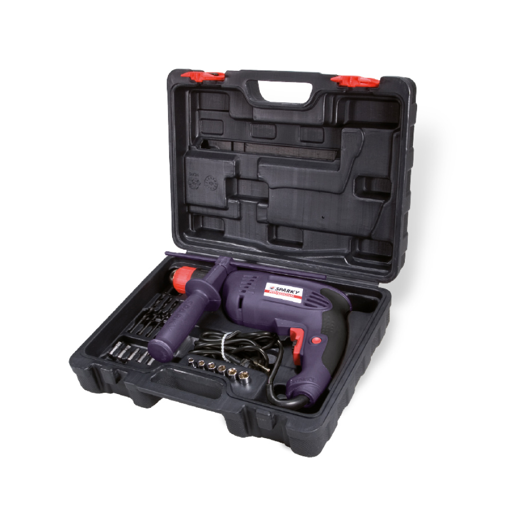 Compacte klopboor in koffer, compleet met 5 boren, 5 schroevendraaier bitjes en 6 dopbitjes.