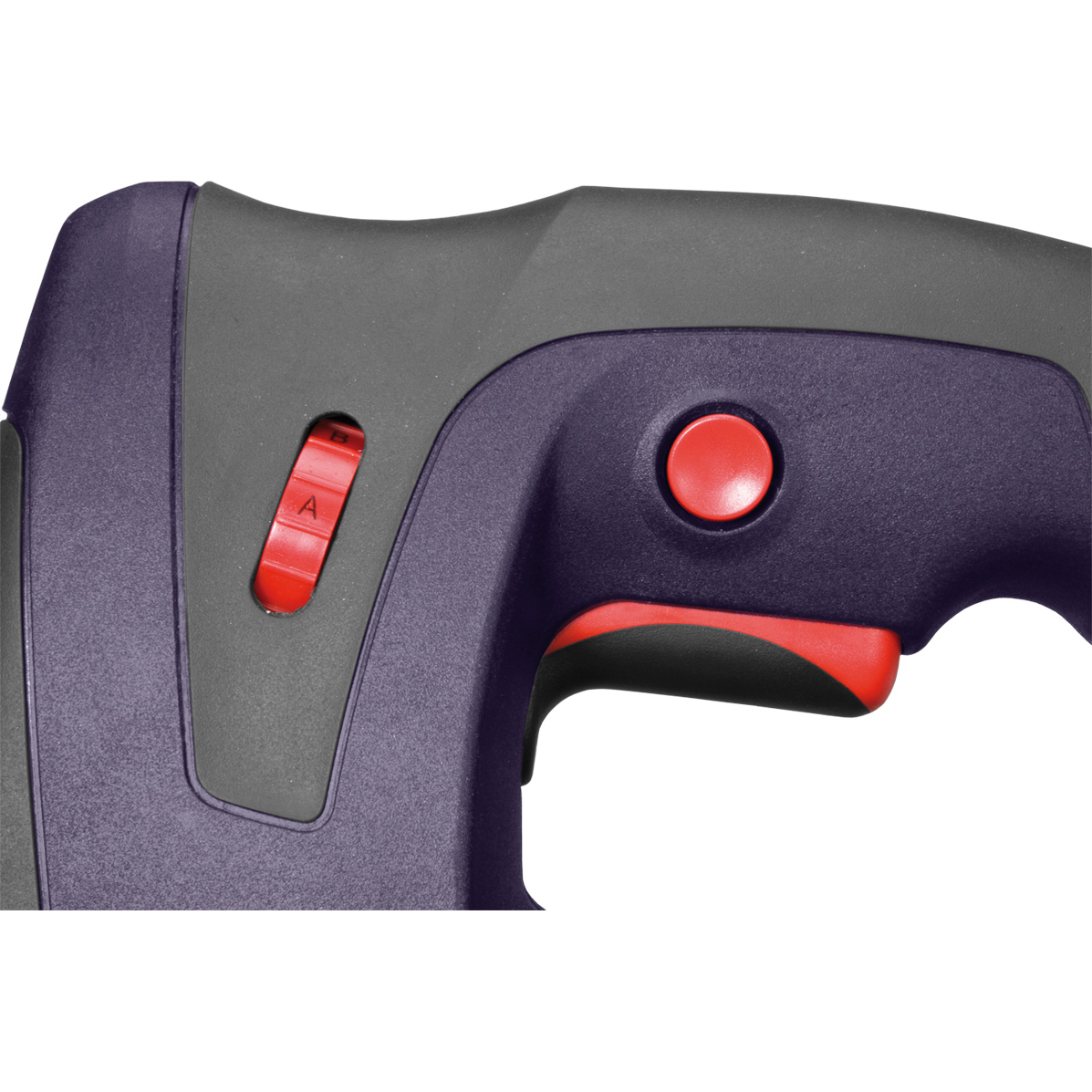 Soepele decoupeerzaag met zaaggeleider en 3 zaagslag instellingen geleverd in koffer.