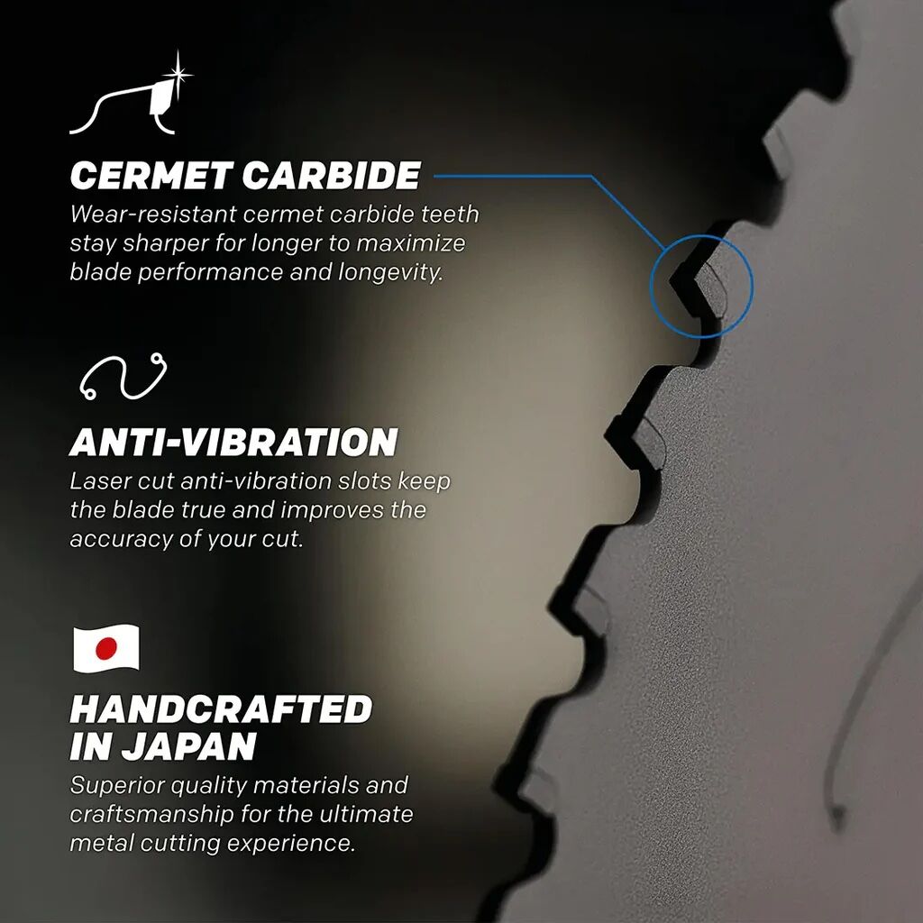 Zaagblad Evolution 355mm voor staal, met hoogwaardige Japanse cermet-hardmetalen tanden die zorgen voor een schonere en nauwkeurigere snede in staal.