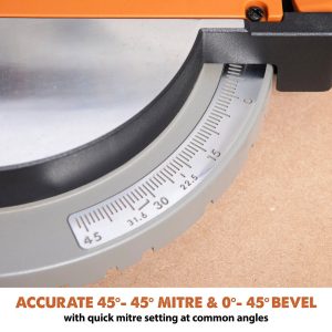 - Kantelbereik 0° – 47° en verstek 45° – 45°